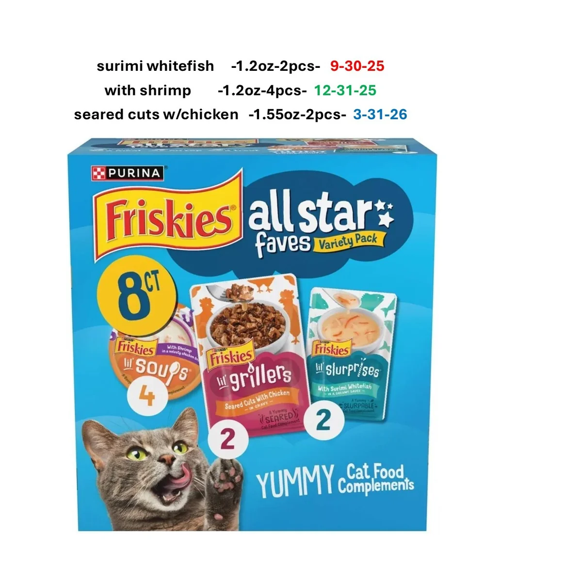 PURINA FRISKIES CHICKEN,SHRIMP,WHITE FISH